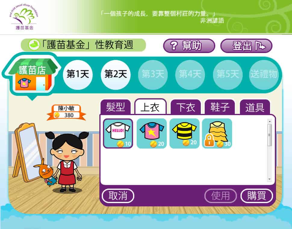 Through videos, mini-games and a configurable avatar system with accessories store, children ranging from primary 1 to primary 6 can learn how to protect themselves from sexual abuse.